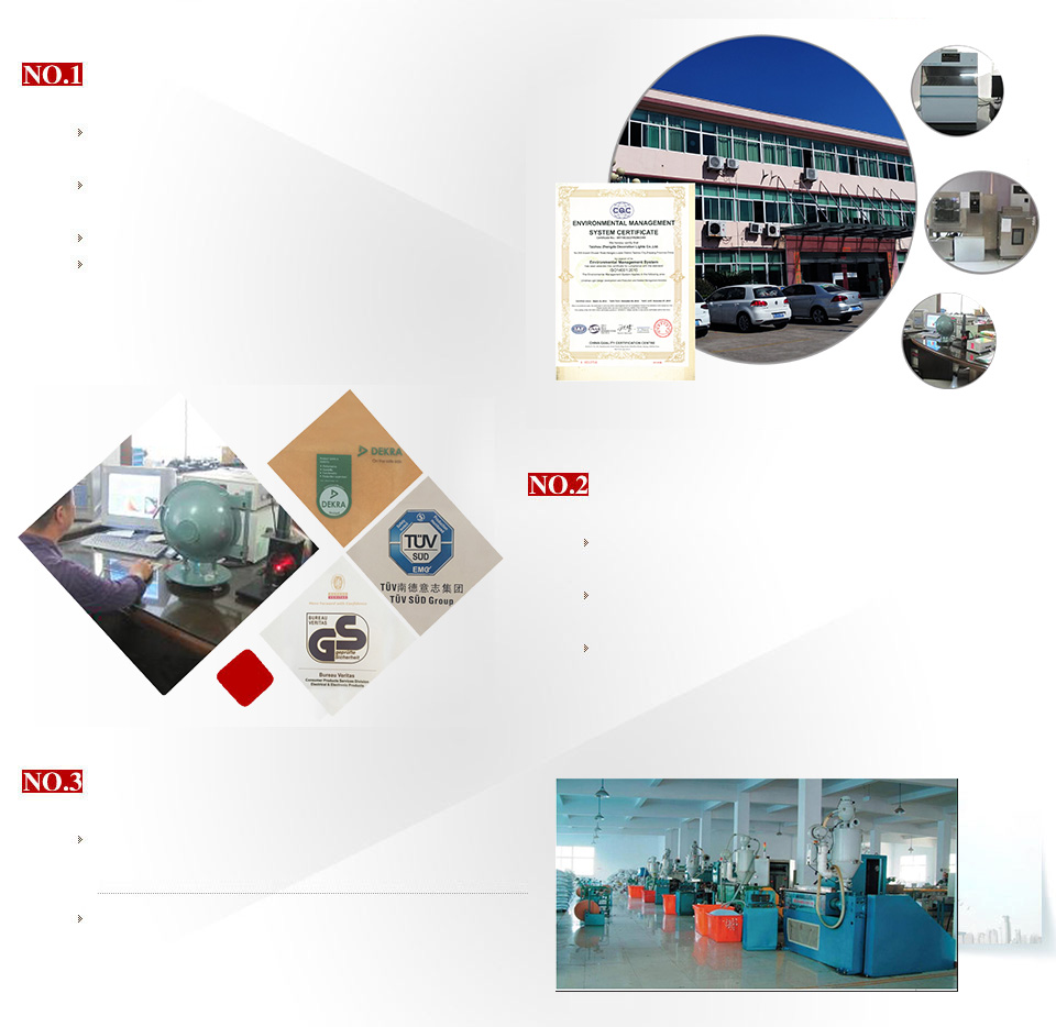 l We keep and follow the company policy “Quality,Honesty,Good price and best service “,until now we already develop the market of France,Germany,Holland,Sweden,UK,Italy ,for the product and the component ,we have GS,NF,KEMA-KEUR,VDE,CE,EMC certification and also compliance with EU directive of chemical test including Rohs,PAHS,REACH etc.under the lead of General manger ,we already set up a strong team with technical ,design ,producing ,quality control ,sales……